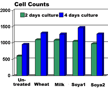 Effect of various peptide extracts on fibroblast metabolism Various peptide extracts were tested on 2- and 4-day-old fibroblast cultures to determine whether they promote proliferation and protein synthesis (Fig. 2). An extremely promising