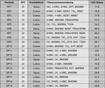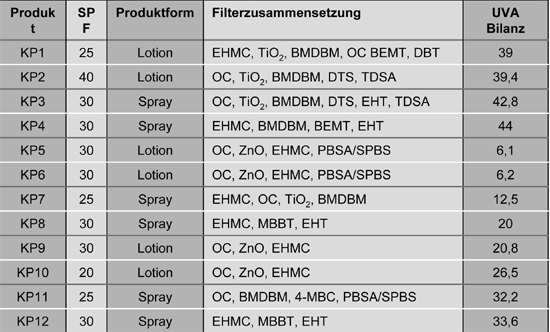 Die Produktdeklaration hinsichtlich des UVB-Schutzes erfolgt einheitlich mit dem Lichtschutzfaktor (LSF, LF oder SPF), der nach einer von der COLIPA normierten in vivo-Methode bestimmt wird (1). Der Verbraucher ist mit dieser Deklaration vertraut und beachtet sie bei der Produktauswahl. Weit weniger stringent ist die Situation bezüglich der UVA-Strahlung und des UVA-Schutzes, obwohl die intensiven Forschungsaktivitäten der letzten Jahre ebenfalls eindeutig einen schädigenden Effekt dieser langwelligen UV-Strahlen belegen konnten. Primär steht hier die extrinsische Hautalterung im Fokus (2). Die Lichtalterung der Haut (Photo-aging) hinterlässt – auch für den Verbraucher leicht erkennbar – sichtbare Spuren. Darüber hinaus ist UVA-Strahlung als auslösender Faktor für Lichtdermatosen bekannt. Ebenso konnten Schädigungen der Zellkerne von Hautzellen nachgewiesen werden (3). Dennoch spielt die Höhe des UVA-Schutzes bisher bei der Produktauswahl eine untergeordnete Rolle. Die Orientierung des Verbrauchers wird zusätzlich dadurch erschwert, dass die Ermittlung der Höhe des UVA-Schutzes und der zugehörigen Deklaration nicht einheitlich geregelt ist. Die meisten Hersteller folgen bei der Bestimmung des UVA-Schutzes den Vorgaben der Australischen Norm (4). Deren Anforderungen sind erfüllt, sobald ein Sonnenschutzmittel die Transmission im Bereich von 320 – 360 nm um mindestens 90 % reduziert. Die Australische Norm sieht oberhalb dieses Schwellenwertes keine weitere Differenzierung vor. Dies führt dazu, dass bei Einhaltung dieses Standards bei Produkten mit niedrigem SPF noch ein adäquater UVA-Schutz sichergestellt ist, mit steigendem SPF allerdings der UVA-Schutz auf gleich bleibendem Niveau stagnieren kann, ohne die Norm zu verletzen; der UVA-Schutz wächst also nicht zwangsläufig mit dem UVB-Schutz. Dies führt dazu, dass bis zum erreichen der Erythemschwelle mit steigendem SPF der verwendeten Sonnenschutzprodukte eine zunehmend höhere UVA-Dosis auf die Haut einwirkt (Abb.2). Vergrößerte Version Diese unbefriedigende Situation führte in der Vergangenheit dazu, dass in nationalen und internationalen dermatologischen Arbeitsgruppen parallel zur Entwicklung von Produktkonzepten, die einen höheren UVA-Schutz ermöglichen, auch Werkzeuge entwickelt wurden, die eine differenzierte Messung und Kennzeichnung des UVA-Schutzes ermöglichen. Als erster deutlicher Schritt in Richtung einer international harmonisierten Vorgehensweise existiert hierzu seit Februar 2005 eine neue Deutsche Industrienorm (DIN 67502) (5). Das besondere an der dort beschriebenen Methode ist, dass der UV-Schutz zunächst in vitro bestimmt wird und der erhaltene Messwert anschließend zum in vivo-Lichtschutzfaktor des Testproduktes in Beziehung gesetzt wird. Nach dem Prinzip der DIN 67502 wurde bereits in den vergangenen beiden Jahren die UVA-Schutzleistungen von Produkten mit SPF 10-12 ermittelt (6,7). Dabei wurde festgestellt, dass Produkte mit den höchsten UVA-Schutzleistungen von Herstellern angeboten werden, die sich seit Jahren intensiv in Forschung und Entwicklung mit dem Thema Sonnenschutz befassen. Dagegen wiesen Discounterprodukte einen im Mittel relevant niedrigeren UVA-Schutz auf. Zielsetzung Die vorliegende Untersuchung verfolgt erneut das Ziel, die UVA-Schutzleistung von aktuell im Handel erhältlichen Sonnenschutzmitteln zu bewerten. Die Studie schließt dieses Mal im Wesentlichen Sonnenschutzprodukte mit Lichtschutzfaktoren (SPF) zwischen 20 und 30 sowie Sonnenschutzprodukte für Kinder mit einem SPF zwischen 25 und 30 ein. Unter Anwendung der DIN 67502 soll überprüft werden, ob der erhöhte UVB-Schutz auch von einem angemessen hohen UVA-Schutz begleitet wird. Besonderes Augenmerk liegt dabei auf Sonnenschutzmitteln für Kinder, da bei diesen in den letzten Jahren eine deutliche Leitungssteigerung hinsichtlich der Lichtschutzfaktoren zu beobachten war. Dies deckt sich mit der Empfehlung, für Kinder Sonnenschutzprodukte mit höheren Lichtschutzfaktoren zu verwenden, da sich viele der natürlichen Schutzmechanismen der Haut erst zwischen dem zweiten Lebensjahr und der Pubertät entwickeln. Uneingeschränkt empfehlenswerte Produkte sollten die empfindliche Kinderhaut durch besonders hohe Lichtschutzfaktoren vor Sonnenbrand und durch eine angepasste UVA-Schutzleistung gleichermaßen vor langfristigen lichtbedingten Schäden bewahren. Untersuchte Proben Für die Untersuchung wurden insgesamt 31 Sonnenschutzprodukte in Drogeriemärkten, im Lebensmittelhandel und in Apotheken eingekauft. Getestet wurden Körperlotionen, Gesichtscremes und Sprays mit unterschiedlichen UV-Filtersystemen und SPF-Werten zwischen 15 und 40; darunter 19 Standard- und 12 Kindersonnenschutzprodukte. Auf den meisten Produkten wurde UVA-/UVB-Breitbandschutz nach dem Australischen Standard AS 2604 ausgelobt. In nur wenigen Fällen wurde – ohne Hinweis auf den Australischen Standard – ein besonders gut balanciertes oder ausgewogenes Verhältnis von UVA- und UVB-Schutz ausgelobt. Detailinformationen zum SPF, der Produktkategorie sowie den Filtereigenschaften finden sich in Tab. 1 und Tab. 2.