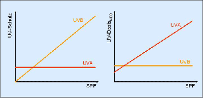 Autorenbeitrag Wie viel UVA-Schutz kann man von Sonnenschutzmitteln mit hohem oder sehr hohem Lichtschutzfaktor erwarten? A. Posselt, R. Daniels Einleitung Übermäßige Sonneneinstrahlung schädigt die Haut. Der hierfür relevante Teil des Sonnenlichtes liegt im ultravioletten Bereich (UV) (Abb. 1). Wenn man intensive Sonnenbestrahlung nicht vermeiden kann oder will, kommen häufig Sonnenschutzmittel zum Einsatz. Dabei ist nicht nur Fachleuten, sondern auch den meisten Laien klar, dass UVB-Strahlung zumindest einen Sonnenbrand verursachen kann. Für die meisten Menschen ist es daher inzwischen selbstverständlich, der Entstehung eines Sonnenerythems durch die Anwendung von Produkten mit ausreichendem Lichtschutzfaktor (LSF, LF oder SPF; sun protection factor) vorzubeugen. Das steigende Gesundheitsbewusstsein spiegelt sich im Verhalten der Verbraucher wider, die sich immer häufiger für Produkte mit hohem (SPF 15, 20, 25) und sehr hohem (SPF 30 und höher) Lichtschutzfaktor entscheiden.
