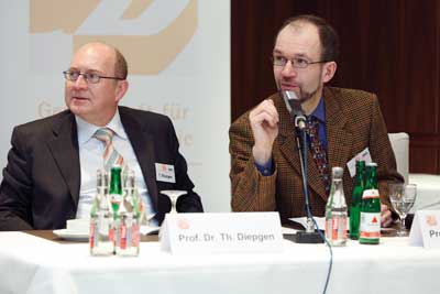 In diese größte randomisierte Doppelblindstudie zum chronischen Handekzem waren 1.032 Patienten mit schweren chronischen Formen (Befall von mindestens 30 Prozent der Handoberfläche) einbezogen. Nach täglicher Einnahme von 30 Milligramm Alitretinoin über 24 Wochen heilten die Symptome bei jedem zweiten Patienten vollständig oder fast vollständig ab. 65 Prozent dieser Patienten blieben auch nach Absetzen der Medikation sechs Monate lang beschwerdefrei. Von den Rezidivfällen heilten 80 Prozent nach einem weiteren Behandlungsintervall mit 30 Milligramm Alitretinoin vollständig ab. Diepgen folgerte aus diesem Befund, dass sich das Retinoid auch für das Langzeitmanagement des chronischen Handekzems eignet. Fazit und Ausblick auf die 14. GD-Jahrestagung Im Schlusswort zum wissenschaftlichen Hauptprogramm der 13. GD-Jahrestagung erinnerte der stellvertretende GD-Vorsitzende, Professor Dr. Hans Christian Korting, München, an die Vielfalt des Tagungsprogramms, das die breit gefächerte Arbeit der GD sehr gut abbilde. Korting dankte den Organisatoren, den Referenten und Vorsitzenden, dem Team des Tagungsbüros unter der Leitung von Anne Kresken sowie den Sponsoren und Ausstellern für ihr Engagement. Zugleich lud er dazu ein, auch die 14. GD-Jahrestagung zu besuchen, die unter der wissenschaftlichen Leitung von Professor Dr. Monika Schäfer-Korting und Professor Dr. Horst Spielmann vom 22. bis 24. März 2010 im Seminaris Campus Hotel in Berlin stattfinden wird. Nähere Informationen dazu werden demnächst unter der Internetadresse www.gd-online.de veröffentlicht. nach oben |