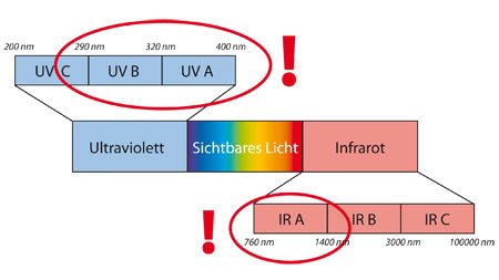 Dermokosmetik Sonnenbedingte Hautschäden durch Infrarot-A-Strahlung Neue Erkenntnisse zur Pathogenese und Prävention Bericht von Dr. Claudia Schöllmann, Königswinter Dass die UVA- und die UVB-Strahlung des Sonnenlichts die Haut schädigen können und die Entstehung von Hautkrebs begünstigen, ist unter Experten unstrittig. Weniger bekannt ist, dass auch der kurzwellige, nicht wärmefördernde Anteil des Infrarotlichts, das sogenannte Infrarot-A (IRA), als besonders prominenter Anteil des Sonnenlichts ebenfalls Hautschäden verursacht. Diese Schäden beruhen auf völlig anderen Pathomechanismen als die Schäden durch UV-Licht und betreffen zudem tiefere Hautschichten. Zum Schutz gegen IRA-Strahlung haben sich bestimmte Antioxidantien als nützlich erwiesen, die heute als IRA-Schutzkomplex in der apothekenexklusiven Sonnenschutzserie Ladival® enthalten sind. Wenn es um die negativen Auswirkungen der Sonnenstrahlung auf die Haut geht, wird meist nur an UV-Strahlung gedacht. Tatsächlich betreffen jedoch über 90 Prozent der Energie des Sonnenlichtes, die auf unsere Haut trifft, nicht den UV-Bereich, sondern andere Strahlungsarten (Abbildung 1). Rund ein Drittel der Lichtenergie umfasst die IRA-Strahlung im Wellenlängenbereich von 760 bis 1400 nm. Sie fördert, wie neuere Erkenntnisse zeigen, die Alterung und die Faltenbildung der Haut (Tabelle).