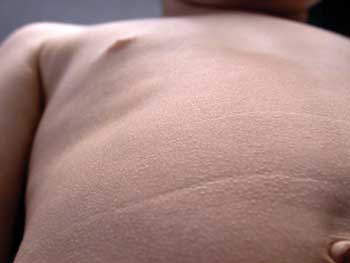 Fehldiagnose „trockene“ Haut Unter „trocken“ wird im Allgemeinen ein Mangel an Feuchtigkeit beziehungsweise Wasser verstanden. Im Umkehrschluss würde eine „trockene“ Haut somit lediglich Feuchtigkeit benötigen, um wieder zu normalisieren. Dieser Schluss ist aber eindeutig falsch, da „trockene“ Haut nicht nur einen Mangel an Feuchtigkeit, sondern auch an Fett impliziert. Insofern sollten wir Dermatologen uns deshalb darum bemühen, diesen Hautzustand durch eine eindeutige Nomenklatur wiederzugeben und ihn besser als trockenfettarme oder hydrolipidarme Haut bezeichnen. Damit setzen wir sowohl in unserem Fachgebiet als auch in den Medien, in der Kosmetologie sowie gegenüber Verbrauchern und Patienten die richtigen Signale für eine sachgerechte Auswahl von Dermatika und Kosmetika. Durch die Unschärfe des Begriffs der trockenen Haut entstehen relativ häufig Über- und Fehlversorgungsdermatosen. Patienten mit perioraler Dermatitis behandeln ihre trockene Haut, die subjektiv oft ein Spannungsgefühl erzeugt, mit lipidreichen Cremes und verstärken dadurch die Problematik. Von vielen Betroffenen wird trockene Haut aus dem Vorurteil heraus nicht behandelt, eine mögliche Eigenproduktion von Hautfett nicht zu unterdrücken. Durch solche Fehlinterpretationen können bei Neurodermitikern Ekzemschübe ausgelöst werden. Hydrolipidarme Haut Bei Verzicht auf Weiterverwendung des Begriffs der „trockenen“ Haut erreichen wir ein neues Verständnis und eine höhere Aufmerksamkeit für die Botschaft der hydrolipidarmen Haut. Sie ist durch eine verminderte Talgdrüsenaktivität, ein vermindertes Wasserbindungsvermögen und/oder eine Störung des Hornschichtaufbaus gekennzeichnet [1]. Über das eigene Sensorium hinaus, lässt sie sich mit Hilfe biophysikalischer Messverfahren objektivieren. So kann mit dem Corneometer® die Hydratation der Hornschicht und mit dem Sebumeter® der Fettspiegel auf der Hautoberfläche gemessen werden. Parameter wie Schuppigkeit, Rauhigkeit, Turgorverlust und Faltenbildung lassen sich mit der Profilometrie untersuchen [1,11]. Wesentlich aufwendiger und deshalb in erster Linie wissenschaftlichen Fragestellungen vorbehalten ist die Bestimmung des transepidermalen Wasserverlusts (TEWL) mit dem Tewameter® [12]. Die genaue Ätiopathogenese der hydrolipidarmen Haut ist ungeklärt. Bei Personen mit atopischer Diathese liegt ein Defekt in der Funktion der Hornschichtbarriere vor, der einen erhöhten transepidermalen Wasserverlust zur Folge haben kann. Es fehlen vor allem die Hornschichtlipide [2-4]. Ein abgeschwächtes Wasserbindungsvermögen kann durch eine Sebostase (verminderte Talgdrüsenaktivität) bedingt sein [5]. Ausser bei atopischer Hautdiathese sowie bei Minimal- bis Maximalvarianten von Ichthyosisformen findet man hydrolipidarme Haut regelhaft auch bei Niereninsuffizienten und bei Diabetikern [9,10]. Häufige Waschprozeduren ohne nachfolgende Hautpflege können insbesondere bei diesen Risikogruppen den hydrolipidarmen Hautzustand zu einem Exsikkationsekzem verstärken. Bei Kleinkindern ist die Haut noch relativ fettarm, weil die hormonell gesteuerte Talgdrüsenaktivität noch nicht voll entwickelt ist (Abbildung 2). Demgegenüber wird die Haut im Alter hydrolipidärmer, da sich sowohl die Talgproduktion als auch die Qualität der Epidermislipide vermindern. Dabei sind die talgdrüsenarmen Areale der Unterschenkel oft zuerst von diesen endogenen altersbedingten Veränderungen betroffen. Auch ist aufgrund nachlassender Synthese der natürlichen Feuchthaltefaktoren die Hydratation der Hornschicht vermindert [6]. In chronisch lichtgeschädigter Haut ist die Lipidsynthese vermindert, wobei vor allem die Cholesterolsynthese abnimmt [14].