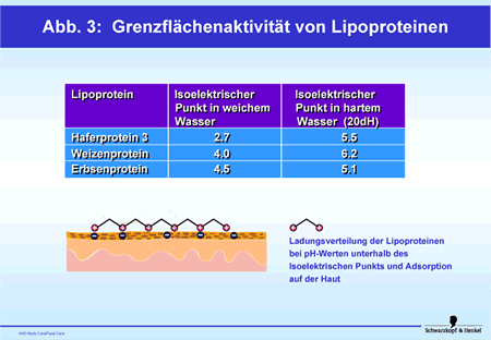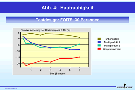 Autorenbeitrag Armin Wadle*, Marianne Waldmann-Laue Multifunktionelle Emulsionssysteme: Lipoprotein - Cremebasis *Schwarzkopf&Henkel und Zentrale Forschung Henkel, Düsseldorf Vortrag anlässlich des GD-Symposiums "Wirkungen von Dermokosmetika" in Düsseldorf am 17. Oktober 2001 Von modernen Hautpflegeprodukten erwarten die Verbraucher eine rasche und nachvollziehbare Verbesserung der Hautqualität. Um diesem Anspruch gerecht zu werden, rückt im multifunktionellen Aufbau einer kosmetischen Formulierung die Cremegrundlage verstärkt in den Fokus der Produktentwicklung. Cremegrundlagen werden dann nicht nur als Träger von Wirkstoffen verstanden, sondern sie verkörpern ein multifunktionelles Wirkprinzip für eine rasche und nachvollziehbare kosmetische Leistung. Lipoprotein-Cremebasis Solche multifunktionellen Cremebasen können mit Hilfe der Lipoproteine aufgebaut werden. Lipoproteine bestehen aus Protein oder Proteinhydrolysaten, die aus den Samen der Pflanzen wie z.B. Hafer, Erbse oder Hibiscin gewonnen werden (Abb. 1). Entsprechend der spezifischen Aminosäurensequenz besitzen sie einen amphiphilen Charakter mit hydrophilen und lipophilen Teilstrukturen. Eine Eigenschaft, die z.B. in der Lebensmittelindustrie zur Emulsionsherstellung ausgenutzt (1) wird. In Hautpflegeprodukten findet man sie heute dagegen überwiegend als Wirkstoff zur Verbesserung der Hautverträglichkeit oder des Hautgefühls (2, 3) . Neuere physikalisch-chemische Untersuchungen zeigen nun, dass Lipoproteine neben dem klassischen Einsatzgebiet der Emulgierung auch zur Stabilisierung von kosmetischen Öl-in-Wasser (O/W) Emulsionen eingesetzt werden können. Diese Proteincremes zeichnen sich dann durch ein rein pflanzliches Emulgatorsystem mit einer exzellenten Hautverträglichkeit aus. Gleichzeitig verbessern sie, entsprechend dem multifunktionellen Ansatz einer modernen Cremegrundlage, aktiv die Hautqualität wie z.B. das Oberflächenprofil oder die Hautgeschmeidigkeit. Rezepturtechnik In Abbildung 2 ist der typische Emulsionsaufbau einer Lipoprotein-Creme dargestellt. Im wesentlichen werden Proteine durch die klassischen Emulsionsbestandteile wie Konsistenzgeber und Ölphase, zur Einstellung der kosmetischen Eigenschaften, ergänzt. Für den Emulgierprozess werden die Proteine zunächst in der heißen Wasserphase aufgeschlossen, wobei diese dann zum Teil hydrolisieren und eine Proteindispersion entsteht. Darauf erfolgt der eigentliche Emulgierschritt mit der Zugabe der Ölphase und den Konsistenzgebern. Es hat sich hierbei gezeigt, dass besonders grenzflächenaktive, polare Lipide wie z.B. das Distelöl zusätzlich zur Emulgierleistung beitragen. Von dieser vorteilhaften Assoziation Lipid und Protein leitet sich dann auch der Name "Lipoprotein-Creme" ab. Grenzflächenaktivität und Isoelektrischer Punkt Da die Lipoprotein-Cremes gänzlich auf die üblichen hydrophilen O/W-Emulgatoren verzichten können, erscheint die Grenzflächenaktivität von besonderer Bedeutung zu sein. Ein entscheidender Punkt bei der Charakterisierung der Protein-Grenzflächenaktivität ist der Isoelektrische Punkt. Dieser wird über die elektrische Ladungsverteilung einer Proteindispersion als Funktion des pH-Wertes bestimmt. Der Isoelektrische Punkt zeigt dann den pH-Wert an, an dem die Ladungsneutralität der Proteindispersion erreicht ist. Die Ergebnisse sind in Abb. 3 zusammengefasst. In weichem Wasser liegt der Isoelektrische Punkt der untersuchten Proteine im sauren pH-Bereich. Diese Lipoproteindispersionen sind damit im üblichen pH-Bereich kosmetischer Emulsionen von ca. 5,5 durchweg negativ geladen. Sie können somit die emulgierte Ölphase durch ihre negative Oberflächenladung gegen Aggregation und Koaleszenz stabilisieren. Darüber hinaus kommt der Lipoprotein-Ladungsverteilung auch bei den Hautpflegeeigenschaften eine entscheidende Rolle zu. In Anwesenheit von multivalenten Kationen, wie sie auf der Haut vorkommen, verschiebt sich der isoelektrische Punkt zu höheren pH-Werten. Dieses Verhalten wurde, wie in Abb.3 ebenfalls gezeigt, durch Calcium-Ionen über eine höhere Wasserhärte simuliert. Calcium-Ion lagern sich dann bevorzugt an die Ionen der Lipoproteine an und verursachen damit den Shift in der Ladungsverteilung. Bei dem natürlichen pH-Wert der Haut von etwa 5,5 sind die Lipoproteine damit neutral bis positiv geladen. Auf der negativ beladenen Hautoberfläche kommt es damit zu einer Adsorption mit Filmbildung. Diese anwendungsbezogene Ladungsanpassung unterstreicht den multifunktionellen Charakter der Lipoproteine. Verbesserung der Hautrauhigkeit Wie sich diese spezifischen Wechselwirkungen in der Hautpflege ausnutzen lassen, wird am Beispiel der Hautfeuchte und Hautglätte gezeigt. Zur Bestimmung der Hautglätte, wurde eine Lipoproteine-Creme zusammen mit zwei Anti-Falten Marktprodukten auf dem Unterarm aufgetragen. Die Veränderung der Hautglätte wurde dann über 6 Stunden verfolgt. Dazu wird das Oberflächenprofil der Haut mit der FOITS-Methode optisch abgetastet und das Tiefenrelief über die DIN-Größe Ra charakterisiert (4). Nach Abb. 4 ergibt sich folgendes Bild. Die unbehandelte Haut zeigt im Tagesprofil einen konstanten Verlauf, während die Lipoprotein-Creme die Hautrauhigkeit direkt nach der Anwendung und über Stunden andauernd deutlich erniedrigt. Die Lipoprotein-Creme ist dabei den marktüblichen Anti-Falten-Produkten im Tagesprofil überlegen. Hautfeuchtigkeit Der positive Einfluss auf die Hautfeuchtigkeit wurde in einer Probandenstudie in-vivo untersucht. Diese Untersuchung wurde sowohl mit Corneometermessungen als auch mit der ATR-FTIR-Spektroskopie durchgeführt, die sich für die selektive Untersuchung des Stratum Corneums in der Praxis bewährt hat (5). Über die gesteuerte Eindringtiefe der IR-Strahlen wird selektiv der äußere Bereich des Stratum Corneums abgetestet und in z.B. für den Feuchtigkeitsstatus charakteristischen Banden dargestellt. Die relative Änderung der Hautfeuchtigkeit nach 