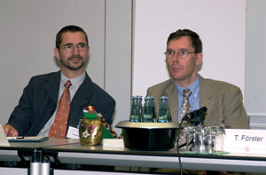 Professor Dr. Rolf Daniels (links), Institut für Pharmazeutische Technologie der Technischen Universität Braunschweig, und Dr. Thomas Förster von der Firma Henkel, Düsseldorf, waren nicht nur als Referenten, sondern auch als Moderatoren im Einsatz. Zusammen mit Professor Dr. med. Hans Christian Korting, Dermatologische Klinik und Poliklinik der Ludwig-Maximilians-Universität München, oblag ihnen die wissenschaftliche Leitung des Symposiums.