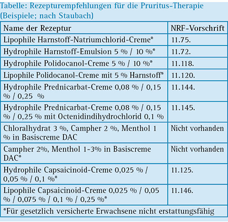 Unabhängig von den neuen pharmakologischen Entwicklungen bleibt die Anwendung adäquater Hautpflegemittel eine wichtige Säule in der Behandlung des Pruritus, wie Privatdozentin Dr. Petra Staubach, Mainz, betonte. Einen wesentlichen Vorteil einer solchen Basispflege sei, dass dadurch die Dosis potenziell nebenwirkungsreicher Arzneimittel reduziert werden könne. Nach Staubachs Erfahrungen versagt die Basispflege jedoch nicht selten wegen mangelnder Compliance oder deswegen, weil die Patienten sie sich aus Kostengründen nicht leisteten. Die Referentin erinnerte daran, dass ein 12-Jähriger für eine zweimal tägliche Anwendung am ganzen Körper immerhin etwa 250 Gramm einer streichfähigen Zubereitung pro Woche benötigt. Große Bedeutung in der Pruritus-Therapie hat nach Staubachs Auffassung auch die dermatologische Rezeptur. Als Beispiele nannte sie die Rezepturempfehlungen, die in die in Kürze zu erwartende Neufassung der Pruritus-Leitlinie der Deutschen Dermatologischen Gesellschaft einfließen sollen (siehe Tabelle). Die meisten dieser Rezepturen enthalten jedoch keine verschreibungspflichtigen Arzneistoffe und sind deshalb für gesetzlich versicherte Erwachsene nicht erstattungsfähig. ![]() Vergrößerte Version hier... Die Rezepturherstellung verantwortet Dr. Andreas Hünerbein, Naumburg/Saale, der neue Leiter der GD-Fachgruppe Magistralrezepturen, betonte die Bedeutung der Rezeptur für das Eingehen auf individuelle Patientenbedürfnisse. Zugleich machte er die Vorteile von standardisierten Rezepturen gegenüber frei zusammengestellten Individualrezepturen deutlich. Letztere müssten vom Apotheker umfassender hinterfragt werden. Dazu gehören die formale Prüfung auf Erstattungsfähigkeit sowie die in der Apothekenbetriebsordnung vorgeschriebene Prüfung der pharmazeutischen Plausibilität. Zudem müsse der Apotheker das vom Arzt verfolgte therapeutische Konzept nachvollziehen können.
