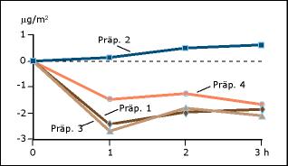 Wirken Duschcremes rückfettend? In jüngerer Zeit beschäftigten sich die Karlsruher Untersucher mit den im Trend liegenden Duschölen und Duschcremes. Getestet wurden zum Beispiel drei verschiedene Duschölrezepturen, die 25 bis 32 Prozent Tenside sowie 16 bis 55 Prozent Lipide enthielten. Ähnlich wie die emulgierenden Badeöle führten auch diese Formulierungen zu einem unterschiedlich stark ausgeprägten entfettenden Effekt. Außerdem traten ein Verlust an Hornschichtfeuchtigkeit und eine leichte Erhöhung des TEWL ein. Duschcremes lassen sich von den Duschölen hauptsächlich wegen ihrer cremigen Konsistenz abgrenzen. Sie enthalten konditionierende Zusätze, die auf der Haut ein subjektiv spürbares Pflegegefühl vermitteln. Der Ölanteil ist dagegen im allgemeinen relativ gering. Von vier getesteten Duschcremes, die ungewöhnlich hohe Ölanteile von bis zu fünfzig Prozent enthielten, zeigten drei ein vergleichbares Reaktionsschema wie die untersuchten Duschöle. Anders verhielt sich nur das erwähnte Handelspräparat, das neben fünfzig Prozent Erdnussöl sehr milde Tenside enthält: Diese Formulierung führte als einzige nicht zu einer Entfettung (Abbildung). Da außerdem der Verlust an Hornschichtfeuchtigkeit und die Erhöhung des TEWL vergleichsweise gering ausgeprägt waren, erscheinen Auslobungen wie rückfettend und mild in diesem Fall gerechtfertigt. (jk)